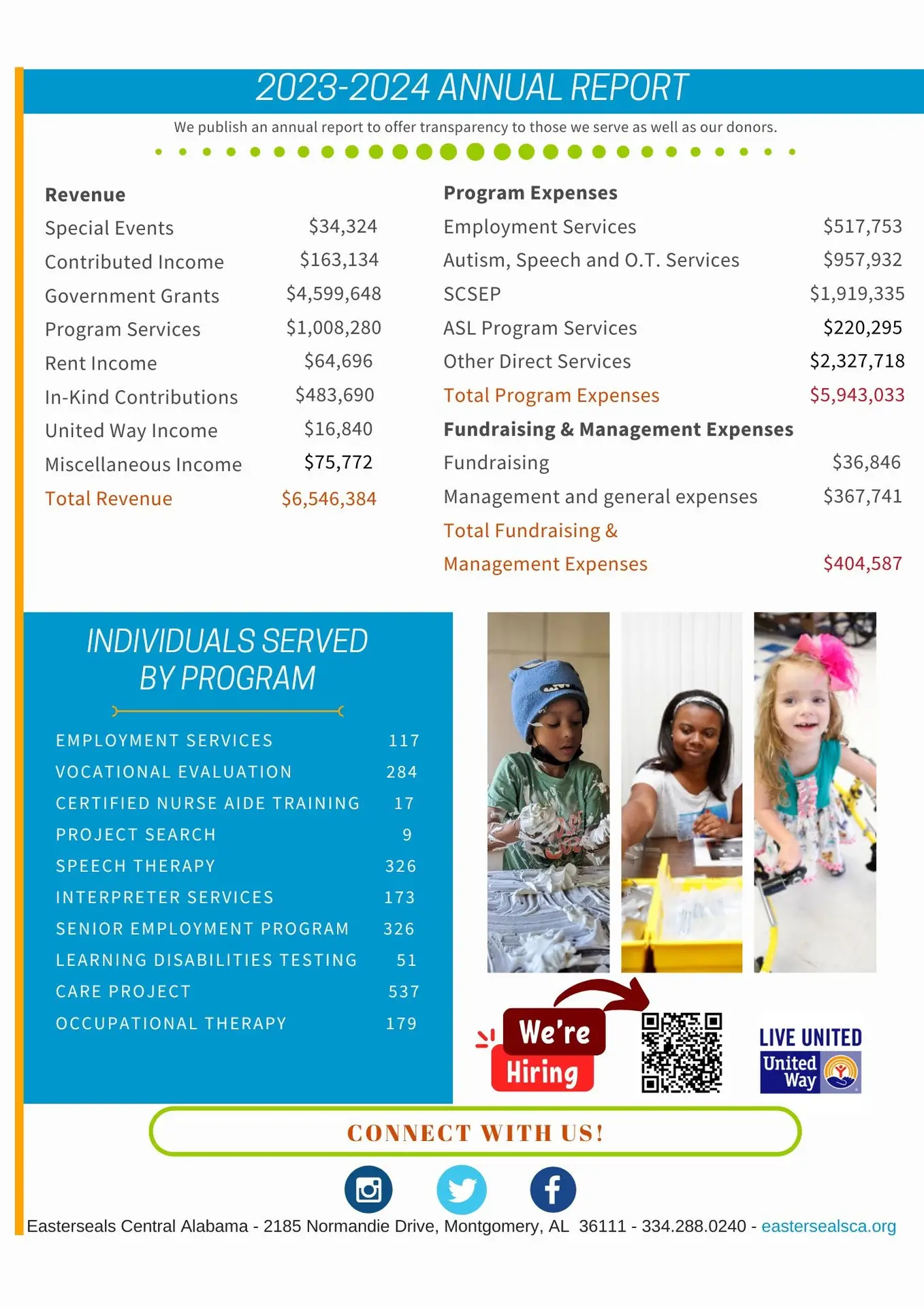 Easterseals Central Alabama’s Most Recent Annual Report – 2023-2024